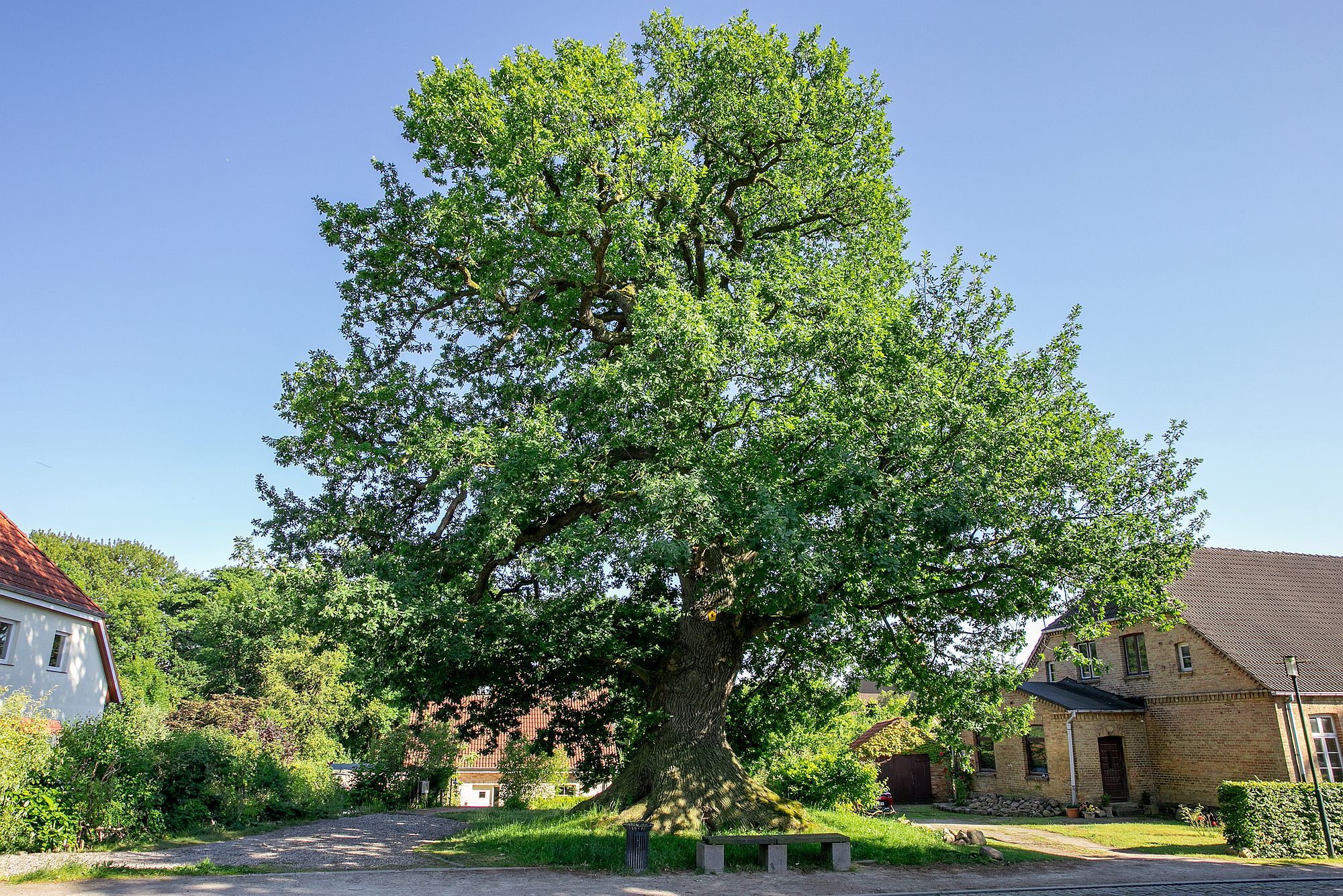 An der Kirche vorbei gehen bis zum Fachwerkhaus an der Ecke, ehemals im Besitz derer von Bothmer und Wohngebäude eines Privatsekretärs. Dann links halten, bis der Fußweg endet. Dort die Straßenseite wechseln und dem Fußweg bis zum Kreisverkehr folgen. Auf der gegenüberliegenden Straßenseite befindet sich die katholische Kirche Mariä Himmelfahrt, die 1932 von der konvertierten Reichsgräfin Mary Collingwood zu Bothmer in Auftrag gegeben wurde.