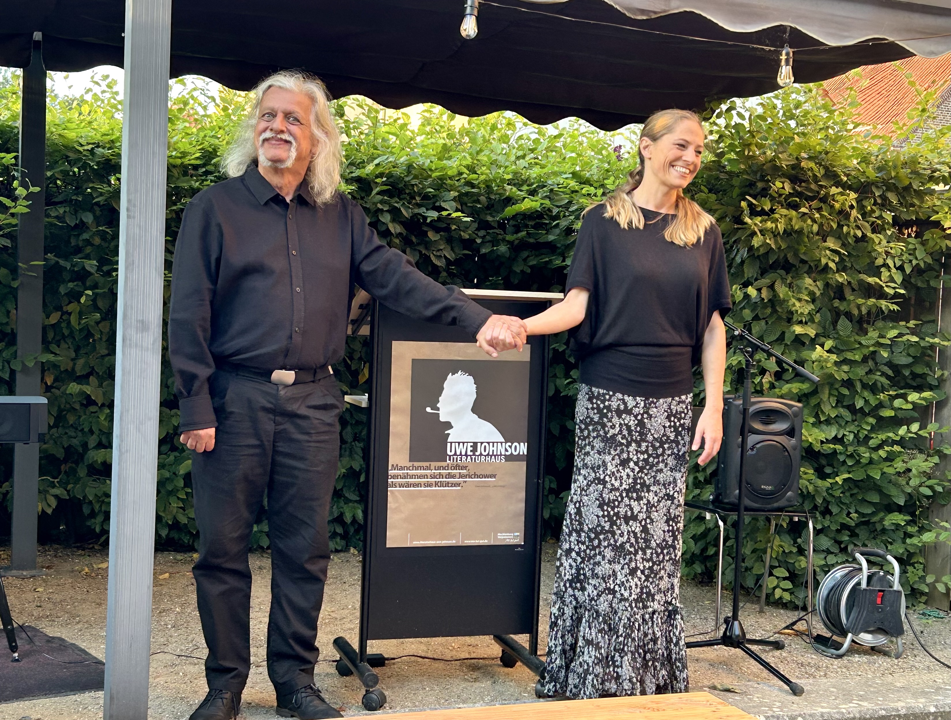 Es war ein wunderbar lauer Juliabend. Im Lesegarten des Literaturhauses „Uwe Johnson“ ließen sich die fast 80 Besucherinnen und Besucher von der Schauspielerin Judith Jakob und dem Pianisten Joachim Jezewski in die Welt der jüdischen Schriftstellerin und Lyrikerin Mascha Kaléko entführen.