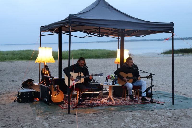 Am vergangenen Freitagabend traten die beiden Gitarristen Alex und Carlo von der Schweriner Band "Sconehead" zum ersten Mal live in der malerischen Kulisse des Wohlenberger Strandes auf. Musikliebhaber genossen die mitreißende Live-Performance der Band in entspannter Atmosphäre, sei es im Liegestuhl, auf einer mitgebrachten Decke oder direkt im Sand.