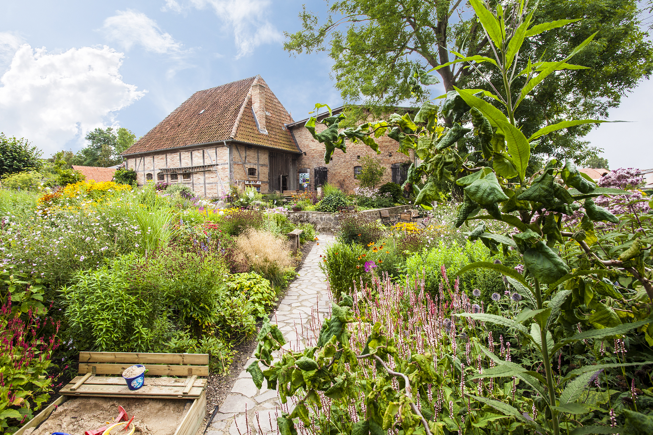 Die Staudengärtnerei mit ihrem großem Schaugarten und kleinen Sitzecken zum Entspannen und Verweilen befindet sich in einer denkmalgeschützten Hofanlage. Hunderte verschiedene Staudenarten sind hier erhältlich; darunter so manche Rarität. Zwischen den Beeten laden viele gemütliche Sitzplätze die Besucher dazu ein, sich niederzulassen und die Blüten- & Insektenvielfalt zu genießen. Ein Kaffeeautomat zur Selbstbedienung steht in der hofeigenen, urigen Scheune bereit, in der sich auch die „Klützer Heimatstube“ befindet. Die Heimatstube kann während der Öffnungszeiten des Schaugartens besichtigt werden.